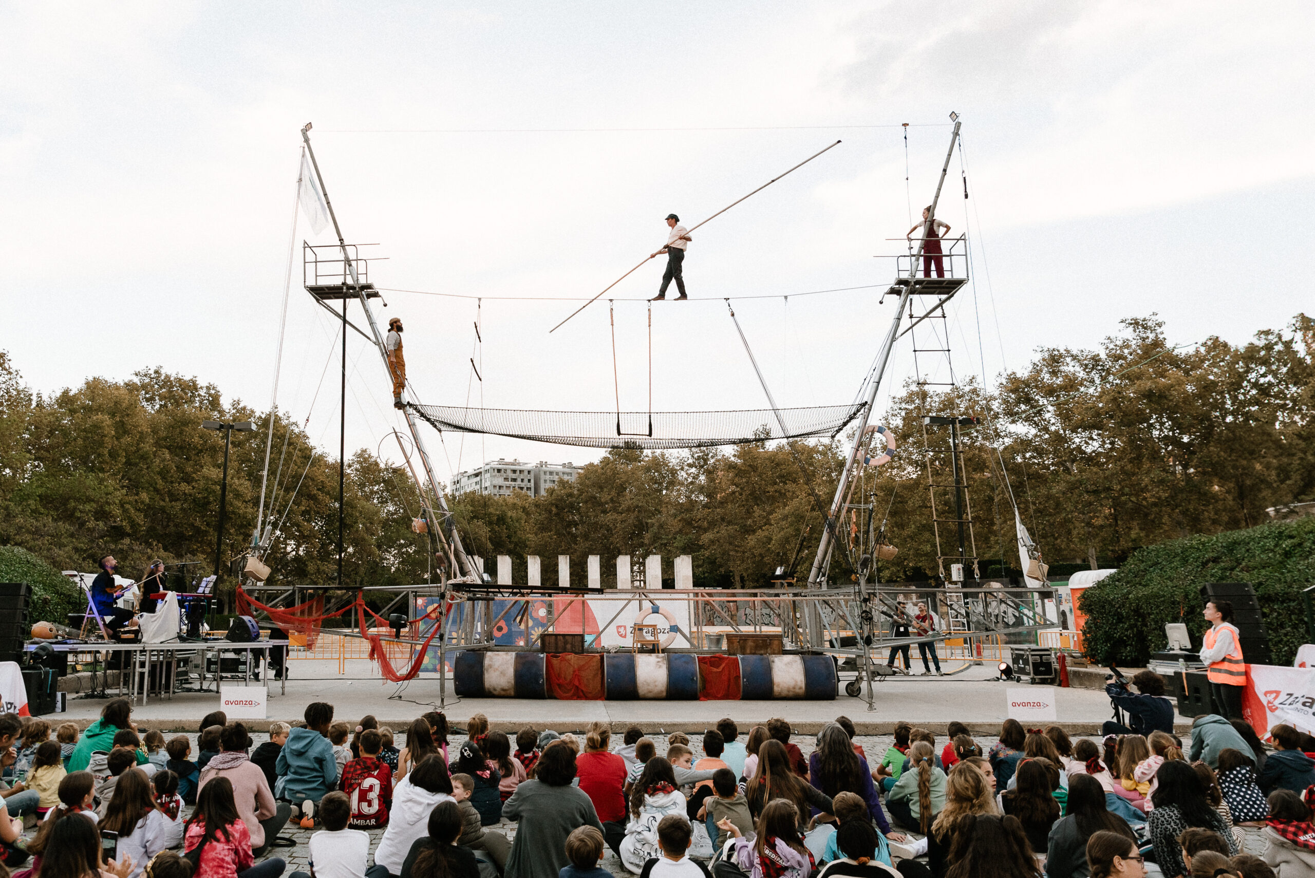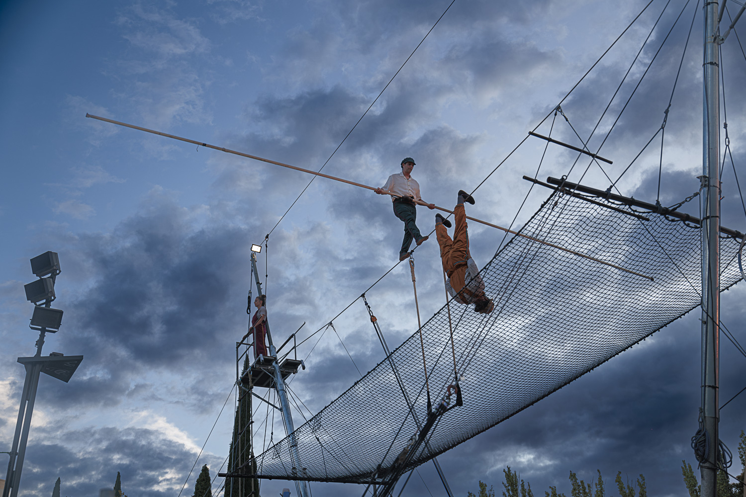Un insólito barco tiende un hilo a 7 metros de altura, trapecio, mástil chino y red aérea. Un peculiar tripulación compuesta por 3 acróbatas y 2 músicos. Un desafío a la gravedad, una invitación a soñar, ilusionarse y dar rienda suelta a la imaginación.